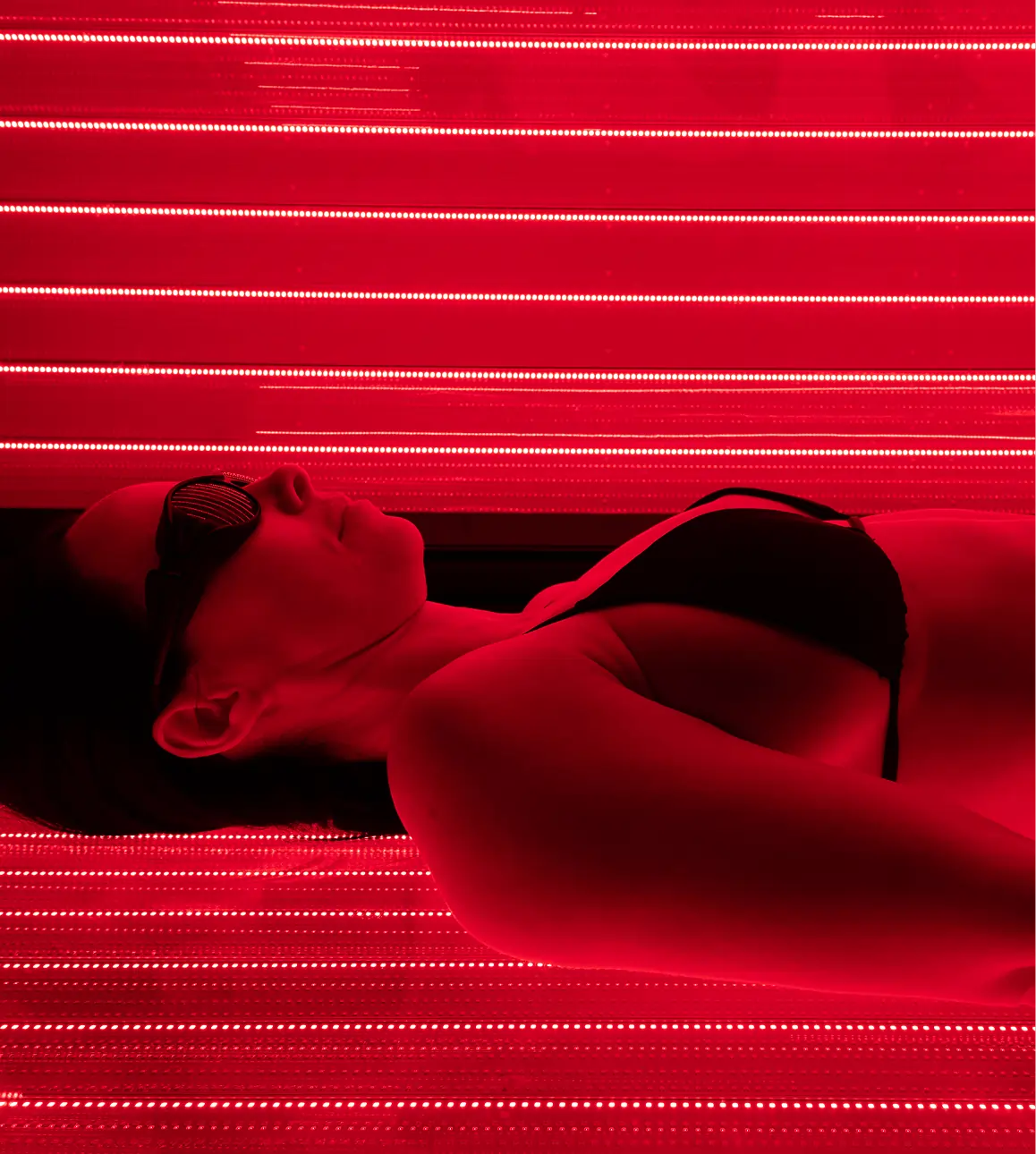 Red Light Therapy uses targeted red and near-infrared wavelengths that support cellular energy and repair without UV radiation. Unlike sunbeds, it does not tan the skin or cause UV-related skin damage.